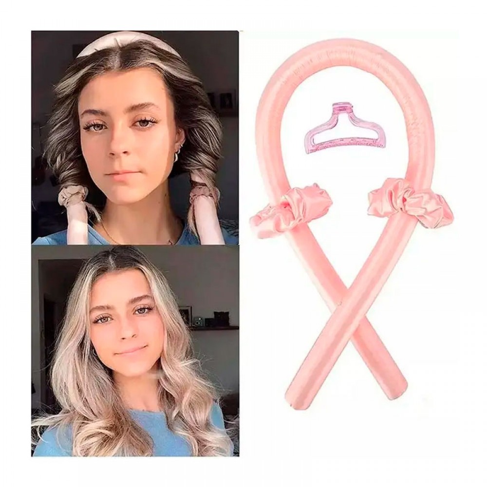 Атласні м'які бігуді для холодної завивки волосся, обруч-джгут для накрутки волосся, рожева шовкова стрічка.