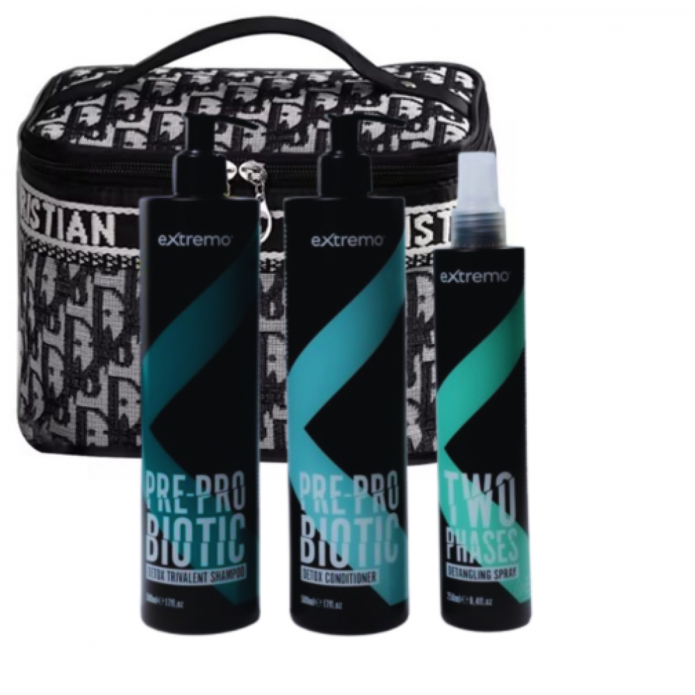 Комплексний набір для жирного волосся та проти лупи Extremo Pre-Pro Biotic з косметичкою у подарунок Christian Dioro, 2х500/250 мл