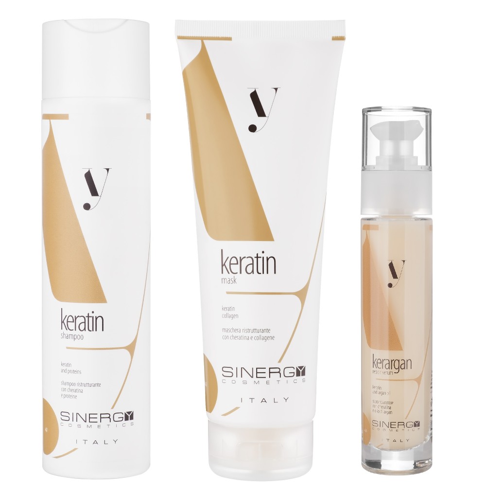 Набір Sinergy Y4 шампунь, маска та сироватка для пошкодженого волосся з кератином, 250/250/50 мл