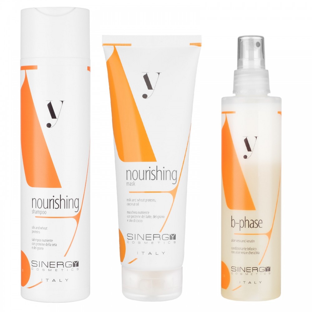 Подарунковий набір Sinergy для реконструкції сухого пошкодженого волосся серії Y1, 250/250/200 мл