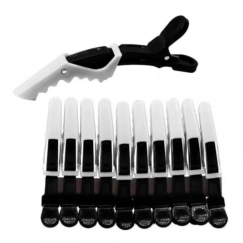 Затискач-крокодил для волосся пластиковий (упаковка 10 шт) чорний з білим