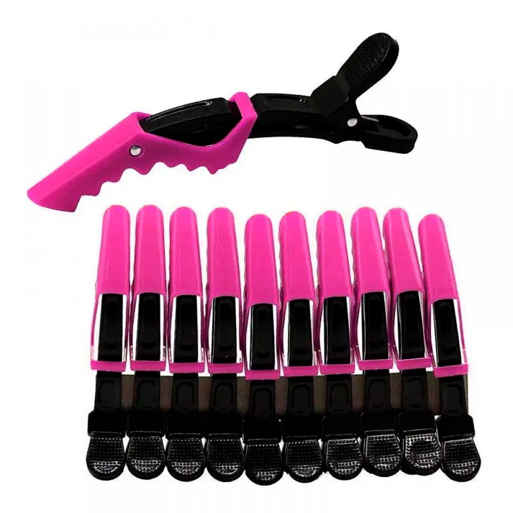 Затискач-крокодил для волосся пластиковий – це чудовий вибір для створення різноманітних зачісок. Упаковка містить 10 чорних затискачів із рожевими вставками, які дозволять створити ефектні акценти в образі.