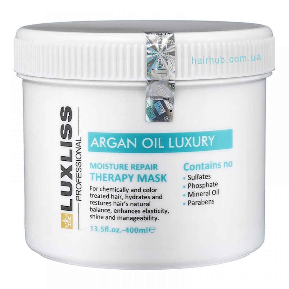 Luxliss Argan Oil Luxury Moisture Repair Therapy Mask забезпечує глибоке зволоження та відновлення пошкодженого волосся.