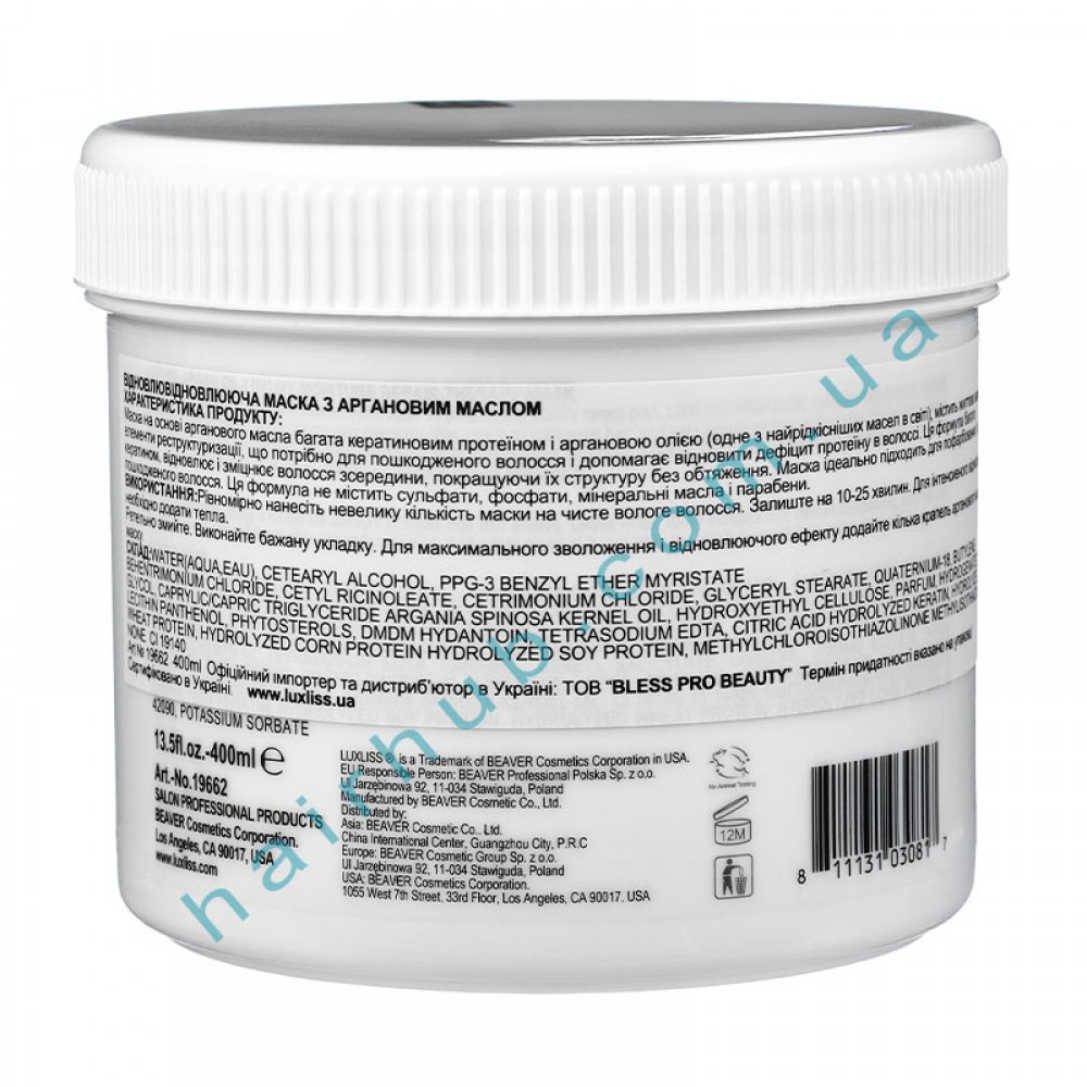 Зволожуюча відновлююча маска Люксліс Арган Оіл з олією аргани